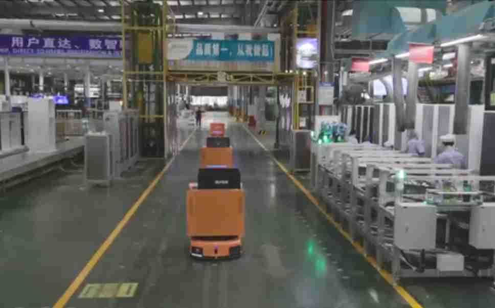 为车载冰箱物流配送打造的智能解决方案,,,包含产中物流通过潜伏举升AMR搬运至线边,,,产后成品物流智能仓储,,流程包含产中物流智能齐套入库,,线边安灯叫料AMR智能配送至线边,,,成品入库、、出库,,通过无人堆高车机器人,,,智能仓储管理替代人工作业管理,,,实现更高存储、、更高效率、、、更具柔性化的解决方案。。