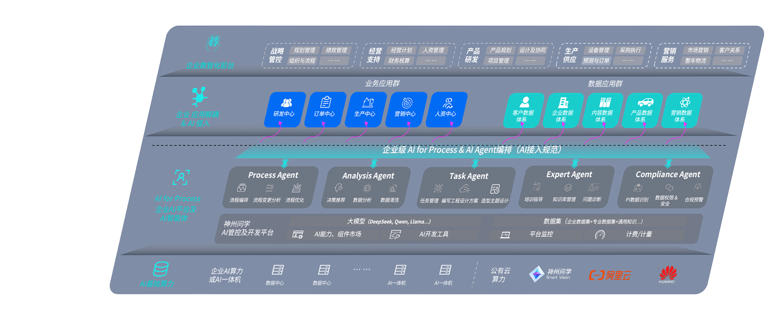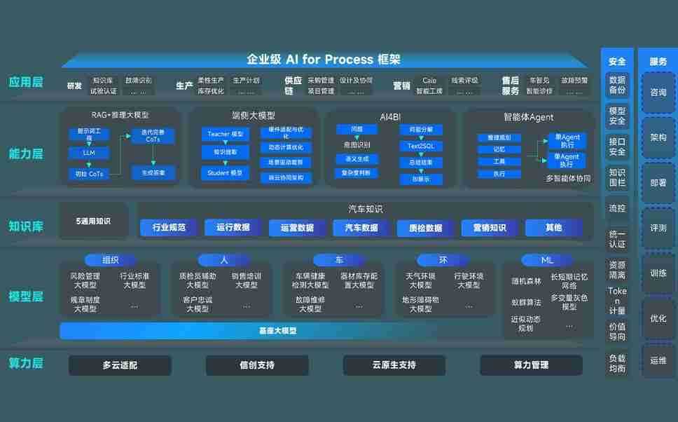 端到端的一站式AI工作空间深度融合了从企业战略规划到日常经营的全流程业务板块,,定向解决车企内部领域多、、、部门多、、链条长、、场景碎片化等难题,,,支持车企快速构建以AI为核心的生产力写作体系,,,,实现任务执行与AI能力的无缝集成与交互